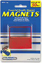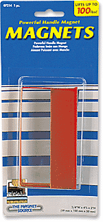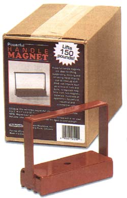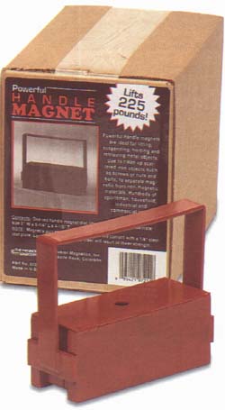 Handle magnets clean up scattered ferrous materials on a work bench, for material handling, to separate out ferrous materials from nonferrous materials, and other applications.